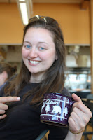Hannah went for the beer tankard from some village in Germany, it's on the smaller size as mugs go, grey with a mountain scene. Having a German surname might have influenced her decision.